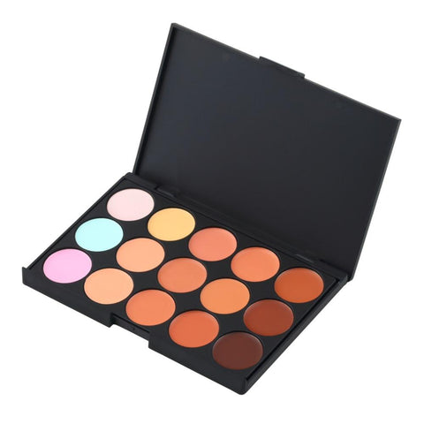 Concealer 15 Color Makeup Palette +Wooden Handle Brush +Puff Face Foundation Bronzer 15 Color Concealer Contour Palette